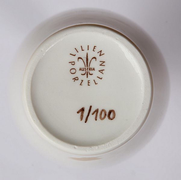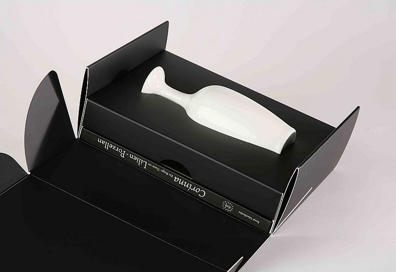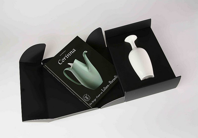 Von den heutigen Besitzern der Marke Lilien-Porzellan den „Gebrüdern Benedikt Karlovy Vary“ habe ich die Erlaubnis für eine Auflage von 100 Stück erhalten, die nun mit einem Zertifikat im „Corinna“-Buch verkauft werden. Jede Vase ist von 1 bis 100/100 nummeriert, in einem Geschenkkarton verpackt und nur in Verbindung mit dem Buch erhältlich.